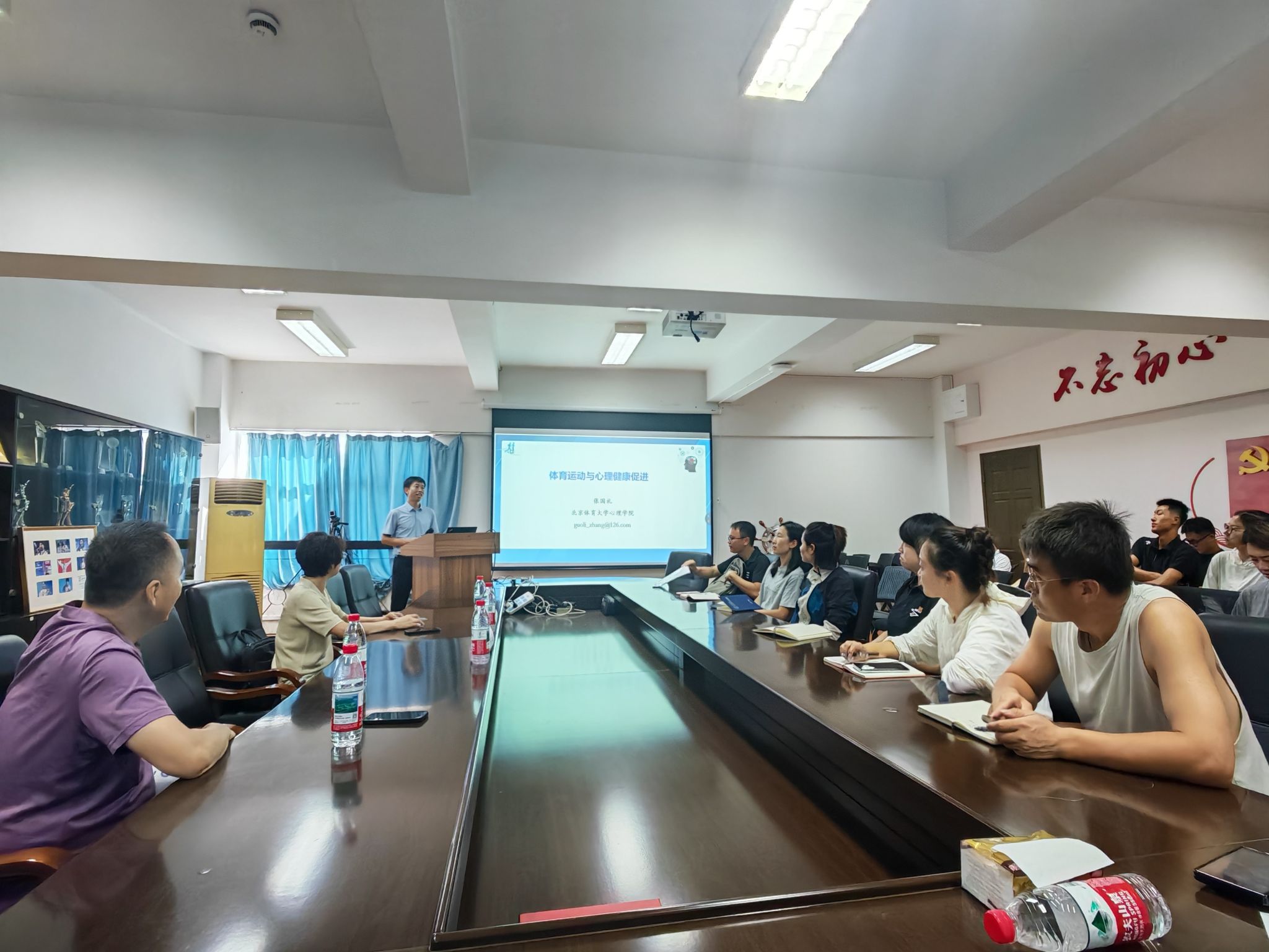 为进一步提升教师在运动健康心理领域的知识储备,绿帽 于9月28日上午在茶山校区体育馆A402会议室举办了“运动心理与健康促进”专题讲座。此次讲座由体育科研与学生体质管理主任朱荣主持,特邀北京体育大学的张国礼博士担任主讲嘉宾,医学人文基地院长王沛出席本次讲座。