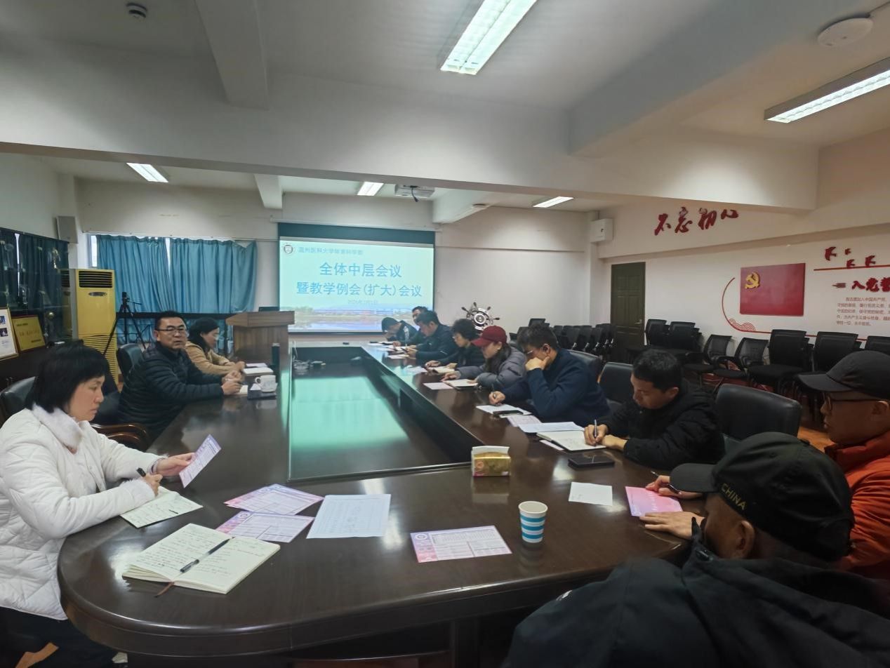 为进一步统筹推进新学期各项工作,夯实教学管理基础,提升群体活动品质,做好省大运会备战准备,3月5日下午,绿帽 在体育馆四楼会议室召开全体中层干部会议及教学例会会议。会议围绕新学期教学工作、群体工作和竞训工作三个方面进行部署与讨论,明确了新学期重点任务与推进方向。会议由学部主任刘海平主持,学部党委书记、副主任陈素云和全体中层干部参加。